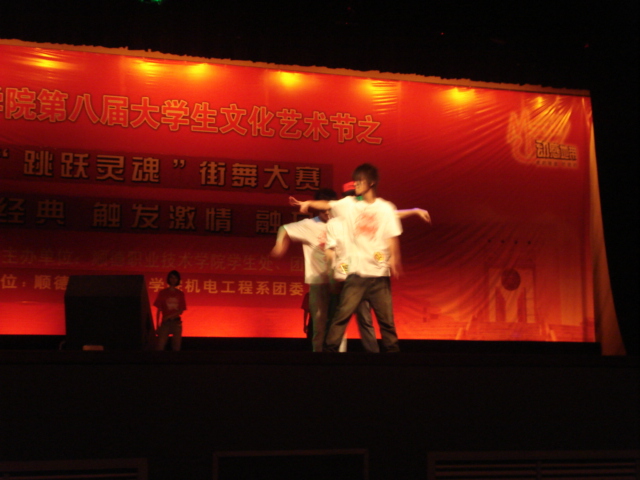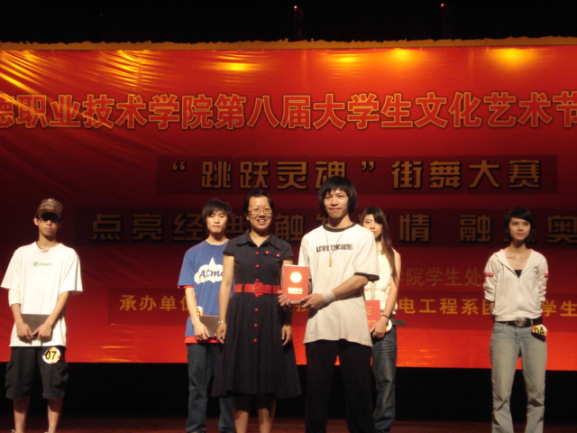 5月27日晚,由学生处和院团委主办、机电工程系承办的顺德职业技术学院第八届大学生文化艺术节之“跳跃灵魂”街舞大赛在梁銶锯礼堂隆重举行。经过激烈的角逐,05工业设计班的李德祥荣获一等奖、最具人气奖和最具台风奖。