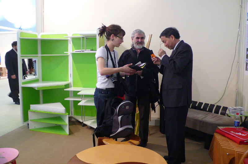 来自世界各地的大学生、设计师、教授、记者、企业家在展览中参观了我院的展位,与我院艺术设计系彭亮、廖荣盛、孙亮、刘晓红四位教师进行交流,对中国学生用独特创意表达东方美学概念与现代生活的原创家具设计作品产生很浓厚的兴趣,纷纷拍照录像,索要画册资料与光盘,一些欧美大学设计学院希望与我院开展合作交流,部分新闻媒体记者现场采访与摄影,特别是来自世界各地的中国留学生与华侨看到了有中国顺德的学生家具设计作品,都非常兴奋,给予了充分肯定与支持。