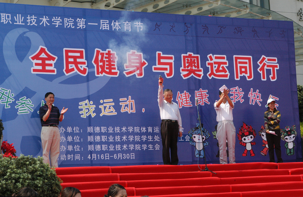 在“2008年北京奥运会”即将来临之际,4月16日,我院主题为“全民健身与奥运同行”的第一届体育节在梁銶琚堂前拉开了帷幕。出席开幕式活动的领导有:院党委副书记、陈智院长;党委委员、院体育节组委会主任、院纪委谭谦章书记;院党委宣传部刘晓顺部长;学生处陈曦处长、周发新副处长;以及全院师生及鼎灜物业管理公司有关人员,共约2000人。开幕式由学生处陈曦处长主持。