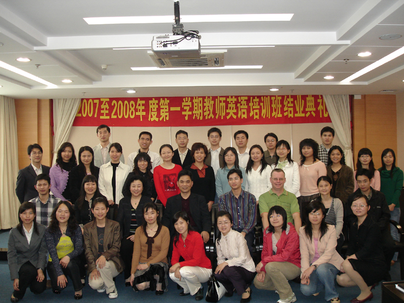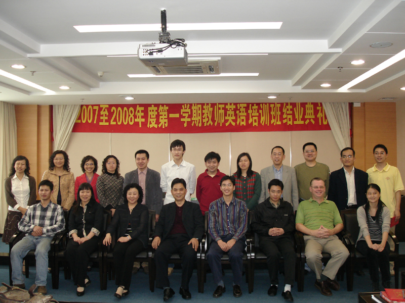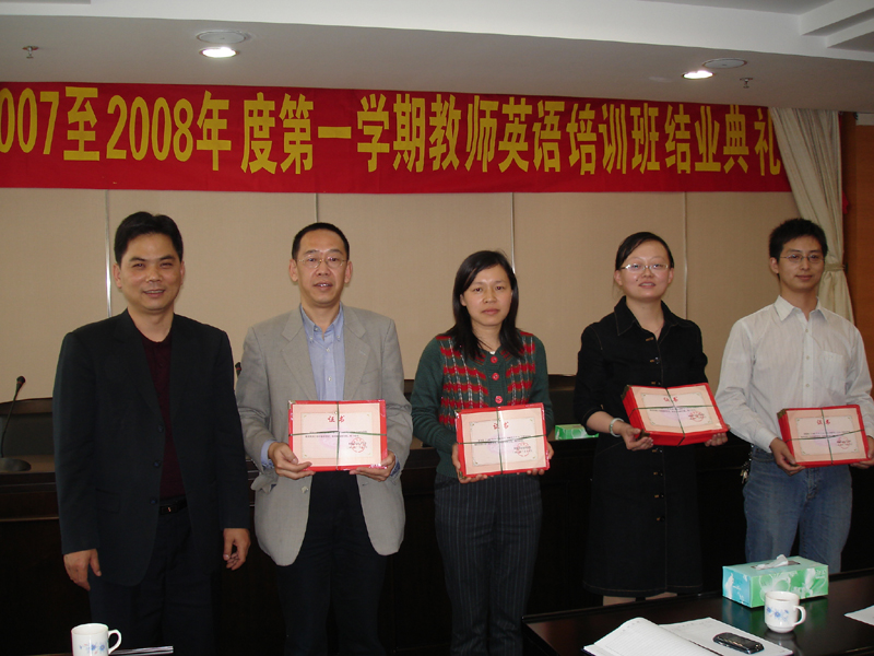3月12日,顺德职业技术学院2007-2008学年度第一学期中青年教师英语培训毕业典礼举行,学院党委委员、组织人事处处长刘毓,组织人事处副处长朱杰等与56名教师一起分享了获得结业证书的快乐。