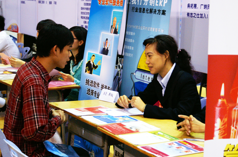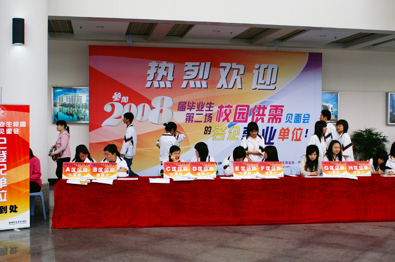 3月22日,顺德职业技术学院2008届毕业生第二场供需见面会在我院梁銶琚礼堂举行。当天,近200家单位提供了2000多岗位,众多的岗位引来了更多的求职者,很多还是从广州、深圳赶来的学子。虽然下着大雨,但是同学们都不敢错过这样的机会,一大早就赶来了。