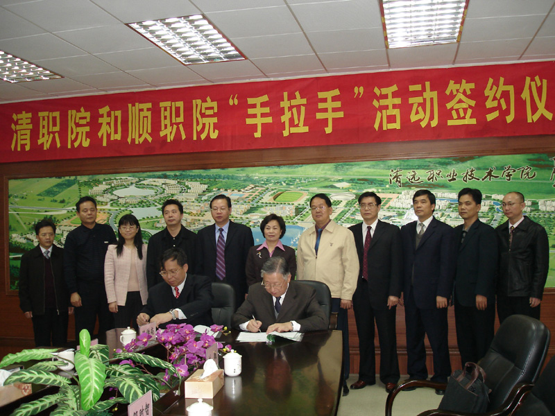 签约仪式上,我院陈智院长指出,清远市近年的经济飞速发展,当地政府高度重视教育,清远职院在校园建设,专业建设等方面取得了喜人的成绩。目前,清远职院即将迎来教育部人才培养水平评估,我们愿意把我们参加评估的具体工作经验与清远职院分享交流。两校是在2006年4月份签订《对口支援协议》的,一年多来,清远职院先后派出了136人(次)师生到我院进行对口交流学习,我们也派出了多批教学、管理人员来到贵校交流。陈智院长希望两所学校相互学习,共同提高,为地方经济社会发展做出更大的贡献。
