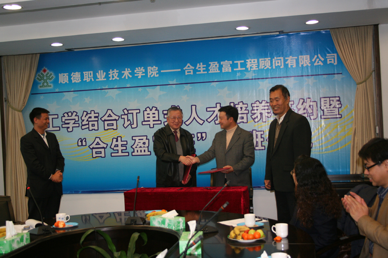 12月26日下午,我院与合生盈富工程顾问公司工学结合订单式人才培养签约暨“合生盈富班”开班仪式在学院行政楼508室举行。学院院长陈智、副院长邹时智,教务处副处长卢伟成,计算机技术系主任陈遵德、总支书记张荣进,合生盈富集团董事长梁智辉、巴索工程信息管理有限公司经理陆志坚,合生盈富集团的18位各部门经理和计算机技术系相关教师以及合生盈富班学生出席了开班和签字仪式。计算机技术系副主任常理民主持了活动。