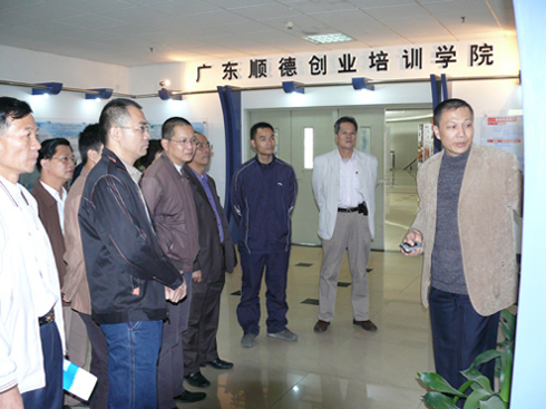 2007年12月4日上午,顺德劳动和社会保障局召开各镇(街道)劳动管理所负责人座谈会在广东顺德创业培训学院举行。顺德劳动局陈瑞娥副局长与劳动局职业技能开发科有关领导,各镇(街道)劳动管理所负责人参加了会议。创业培训学院欧阳志强院长陪同客人参观考察了ROHS实验室、数控、制冷等实训场地。会议探讨了创业竞赛和创业培训工作的开展情况,推动了全民创业,启发了创业带动就业的新思路。
