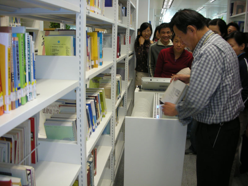 在深图工作人员的陪同下,我馆员工进行了全面性的参观和部门间对口交流,着重了解了该馆采用的DILAS(数字图书馆体系结构研究和应用平台开发项目)系统和RFID(无线射频技术)在图书馆中的应用,深图工作人员为我们演示了利用RFID技术进行书刊自助借还、自动定位上架的操作。此外,对于特色资源建设、专题服务、视听服务、流通服务、期刊管理等方面,也进行了有益的交流和学习。