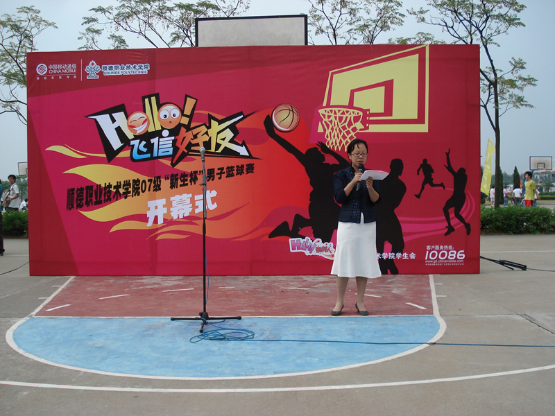 10月15日下午,顺德职业技术学院“新生杯”男子篮球赛在运动区篮球场上拉开了帏幕。学生处陈曦处长、周发新副处长,院团委张业华副书记、孙红舟老师,体育老师蔡义老师,以及参赛的球员、啦啦队、观众约1000人参加了开幕式。