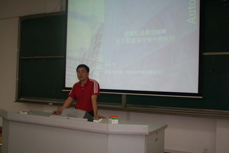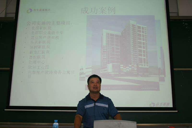 会上,梁智辉董事长简要介绍了合生盈富集团的情况和成功案例,然后深入浅出地讲述了把BIM技术引入工程顾问中的原因和BLM技术工程项目高效应用的新模式。随后,梁董还与现场同学进行了互动,同学们发言踊跃,气氛热烈,梁董答疑解惑,机智幽默。接着,由合生盈富集团下属的巴索工程信息管理有限公司陆志坚经理通过大量鲜活的事例全面介绍了建筑信息模型BIM在工程建设行业中的背景和应用。最后,计算机技术系罗勇胜老师介绍了具体的课程和安排。