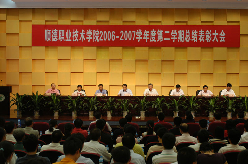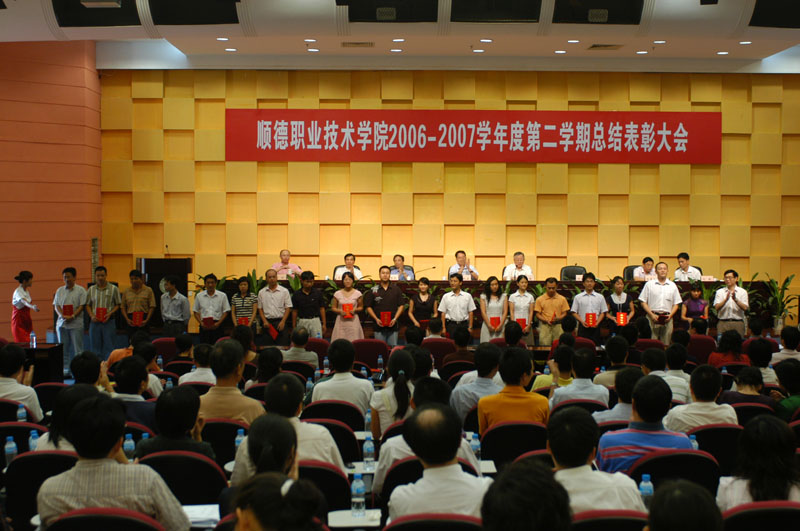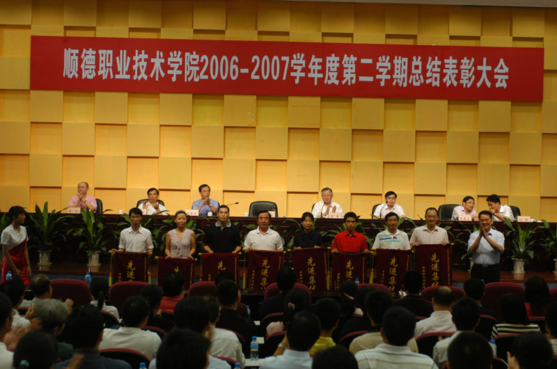 随后,罗勇武副院长宣读了《顺德职业技术学院关于表彰2006-2007学年度第二学期先进集体、先进个人的决定》。我院共评出组织人事处、学院办公室、继续教育部、督导室、“示范工程”办公室、机电工程系、经济管理学院、医学系等8个先进集体,肖冰等36名先进个人。