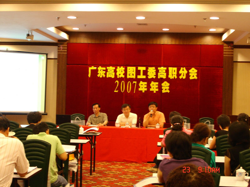 6月22日-24日,由我院图书馆承办的广东省高等学校图书情报工作指导委员会高职分会2007年年会于顺德盈建酒店召开。广东省教育厅高教处副处长刘文平、学院副院长罗勇武及来自省各高职院校图书馆馆长70多人参加了此次会议。