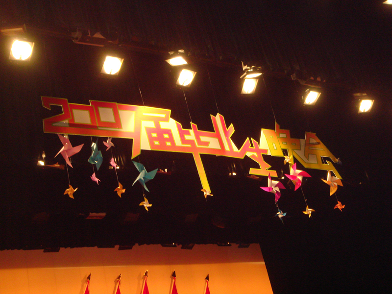 节奏明快的音乐响起,《模特走秀》拉开了晚会的序幕。看那一张张神采飞扬的青春脸孔,不禁会让人倍感自信和充满力量。接下来,一曲悠扬的《卡农》钢琴演奏久久陶醉着在场的观众。晚会节目丰富多彩,有校管乐队演奏的《萍聚》等经典乐曲,道出台下师生此时此刻的真切心情,还有学校流行乐队带来的歌曲串烧,学校舞蹈队表演的《新阿里郎的故事》、《梁祝》,精彩不断。一场紧张而有趣的互动《问答游戏》更是台上台下打成一片,气氛活跃,师生其乐融融,同时掀起了晚会的高潮,以及街舞表演等节目,秀出了青春、显出了活力,为毕业生留住了一个美好的记忆。