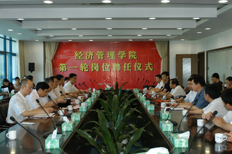经济管理学院高新和院长代表经济管理学院全体教职员工,感谢学校党委和学校组织人事处给予的大力支持,并代表经济管理学院党政领导班子,感谢经济管理学院全体教职员工的理解、信任和支持。高新和院长表示,经济管理学院岗位聘任工作是经济管理学院管理体制改革的前奏,它拉开了经济管理学院提高管理效率,优化教学资源配置,创新经管类通专结合、工学结合人才培养模式,加强专业建设和课程建设,拓展社会服务职能,提升教学工作质量和水平的序幕。高新和院长表达了经济管理学院全体教职员工抢抓机遇,顺势而为,同心协力,争创楷模的决心。他说,经济管理学院要在学校党委的指引和部署下,在学校各部门单位的指导和支持下,发扬“精诚团结、通力合作、承秉务实、高效创新”的工作作风,一定能把经济管理学院建设成为“发展示范、改革示范、管理示范”的一流二级学院。