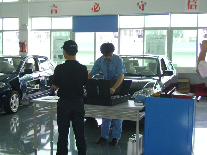 针对“汽车复杂故障的诊断技能”和“汽车保养维护操作技能”等两项比赛项目,机电系迅速从汽车专业中挑选04汽车专业谢劲、刘一举、劳家杰、游赞权、黄钊明和05汽车专业的韦国翘等优秀学生组成参赛队伍,同时配备了汽车维修技术精湛、经验丰富的敖传宝老师作为教练。在仅有的二十多天里,学生和教师放弃了所有休息时间,甚至经常训练到深夜。学院相关部门也迅速购置了比赛所需要的一辆汽车和汽车诊断电脑。机电系老师还将私家车无偿提供给学生们训练使用。