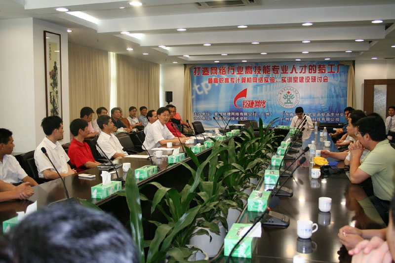 6月1日下午,会议安排有6场主题演讲,其中,我院省级高职高专示范性建设专业--计算机网络专业负责人朱义勇老师就顺德职业技术学院网络实验室建设经验进行了演讲,与会的专家学者对我院的计算机网络专业在实训室建设上,特别是产学研方面取得的成绩给予了充分的肯定和一致的好评。会后,有许多兄弟院校的同行表示愿与我院进一步加强交流的意向,特别是对我院综合布线实训室和多媒体实验实训室也表达了极大的兴趣,我系有关负责人表示,愿意与有关单位在网络实训基地合作的基础上,开展更广泛地合作与交流。