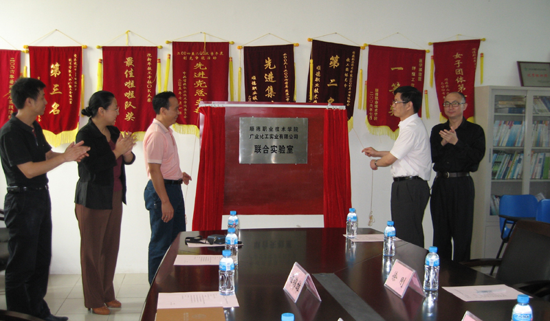 4月27日,“顺德职业技术学院---广业化工实业有限公司联合实验室”作为医学系首家校企联合实验室正式挂牌成立,广业化工实业有限公司董事长冼英辉、董事向丹,我院副院长邹时智、党委委员徐刚、科技处副处长刘晓顺、教务处副处长张斌等出席了挂牌仪式。
