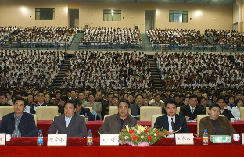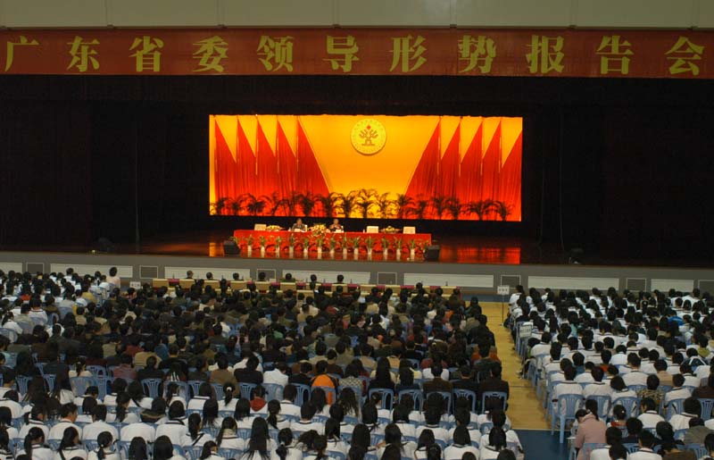 顺德区委书记刘海,区委常委、区委区政府秘书长陈家添,顺德区副区长毛永天,顺德区教育局局长陈锡钊,学院陈智、何锐连、罗勇武、陈粟宋、谭谦章、刘毓、徐刚等领导和3000多名师生聆听了报告。