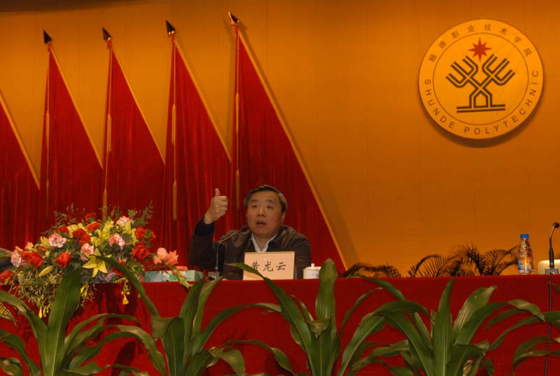 关于我院的发展,黄龙云常委谈了三点看法:一是要抓住国家对职业教育非常重视的历史机遇,努力争取进入100所国家级示范院校,做大做强做出品牌来;二是发展高等教育应具有战略性的眼光和宽广的胸怀,因此学院应不断拓展招生面,逐步面向全国招生;三是学院应在继续提高办学水平和人才培养质量的同时,充分利用顺德境外乡亲优势,走国际化发展道路。