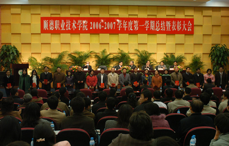 随后,邹时智副院长宣读了《顺德职业技术学院关于表彰2006-2007学年度第一学期先进集体、先进个人及特别奖的决定》。我院共评出组织人事处、学院办公室、医学系、机电工程系等4个先进集体,齐振彪等37名先进个人。本学期还设立了特别奖,李国荣、徐言生、王鸿博等三名教师荣获了特别奖。三名荣获特别奖的教师分别向大会介绍了自己在本学期的主要工作成绩。李国荣老师来校仅半年,就研制出三种新产品,并为企业解决了多项技术难题,同时,论文在国际比赛中获奖;徐言生老师完成1800多课时的教学、管理、科研工作量,他积极带领学生参与实践,把通专结合的人才培养模式落实到具体 的教学工作中;王鸿博老师在教学之余,与企业紧密结合,深入生产一线,积累了丰富的实践教学经验,获得企业好评。对三名老师的的工作实绩,大家报以热烈的掌声。