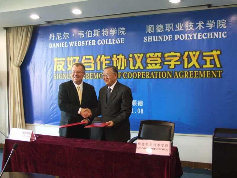 2007年1月8日,我院与美国Daniel Webster学院举行友好合作项目签约仪式,双方将在教师互访、合作培养学生以及共同推动学术交流活动等方面开展合作。