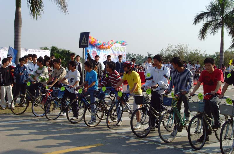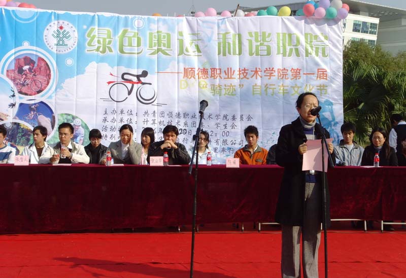 首届“骑迹”自行车文化节分为两大项目:自行车标志征集大赛;自行车环湖大赛。本次自行车文化节参加报名的学生达到157人之多,我院老师也积极报名参与。其中,来自顺德的“碧篮骑行俱乐部”自行车队和来自佛山的“佛山C2000”自行车队的自行车业余选手也赶来参与了我院文化节的本次赛事,精彩赛事得到现场围观观众的热烈捧场和喝彩。