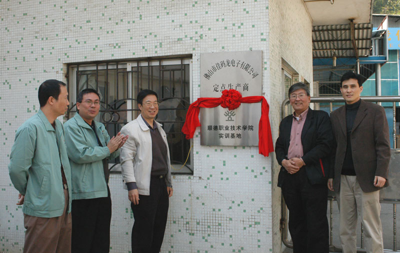 为进一步加强校外实训基地建设,12月22日,教务处副处长张斌,电子系主任郭荃弟,书记石玉财,副主任张建业、蔡永旭一行前往顺德高迅电子有限公司,与该公司总经理黄显光等就有关合作事宜进行了座谈交流之后为实训基地揭幕。