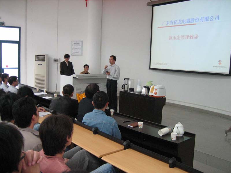 动员大会上,亿龙集团开发部的工程师为同学们讲解了家电产品设计有关要求和产品结构。
