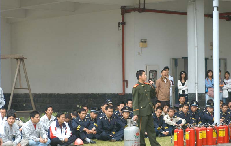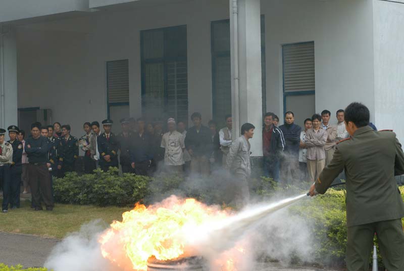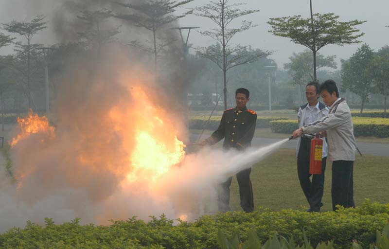演练场上,顺德消防大队古教官首先讲解了火灾的种类、引发火灾的因素、防范措施及正确处理方法,并当场点燃了汽油桶、煤气罐,现场示范了如何正确使用干粉灭火器扑灭液体火灾和汽体火灾。尔后,大家手持灭火器,按照教官讲解的要领,逐一上场,真实地体验了一回救火的紧张过程,紧接着,方队长又给大家讲解示范了消防栓的连接及水枪的使用方法,现场进行了模拟演练,各单位在教官的组织下开展了评比竞赛活动,通过实际操作,大家基本掌握了火灾发生时扑救的正确方法。