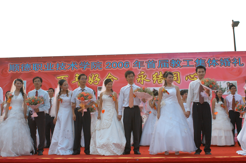 执子之手,生死契阔。美妙的华章虽告一段落,但顺德的山山水水记录下这难忘的时刻。新人们相约,将爱的誓言铭记于心,把甜美的爱情化为事业的动力,携手与共,为建设顺德职业技术学院贡献青春和激情。祝福这21个小家庭,幸福美满;也祝福我们祖国这个大家庭,前程似锦!