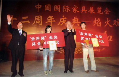 9 月12日,首届“金斧奖”中国家具设计大赛颁奖晚会在上海科学技术馆隆重举行,顺德职业技术学院家具设计专业的2位学生黄深杨(毕业生)和杨文莉(3年级学生)双双摘取了本届设计大赛的专业组金奖和院校组金奖。这也是顺德职业技术学院家具设计专业的学生第5次在全国家具设计大赛中夺取金奖。中国轻工业联合会副会长张善梅与中国家具协会会长贾清文亲自为两位学生颁奖。