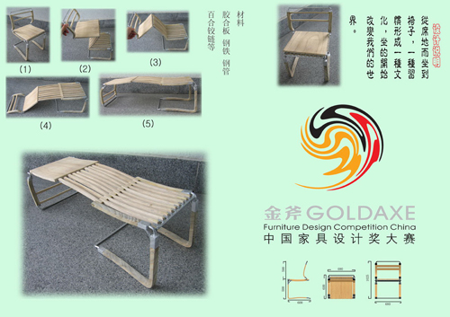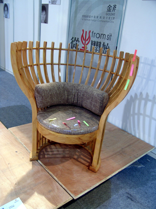 2006 首届金斧中国家具设计奖大赛 (简称“金斧奖”)主题为“创新思维——从坐开始”。意图通过对“坐”的方式研究,探讨人类在当代不同环境下生活与工作行为与坐具的相互关系,从而由一个角度开始推动家具设计的整体发展。