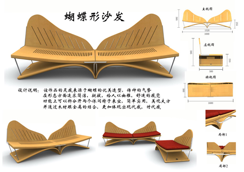 作者:杨伟杰(顺德职业技术学院家具设计专业3年级学生) 作品名:蝴蝶形沙发