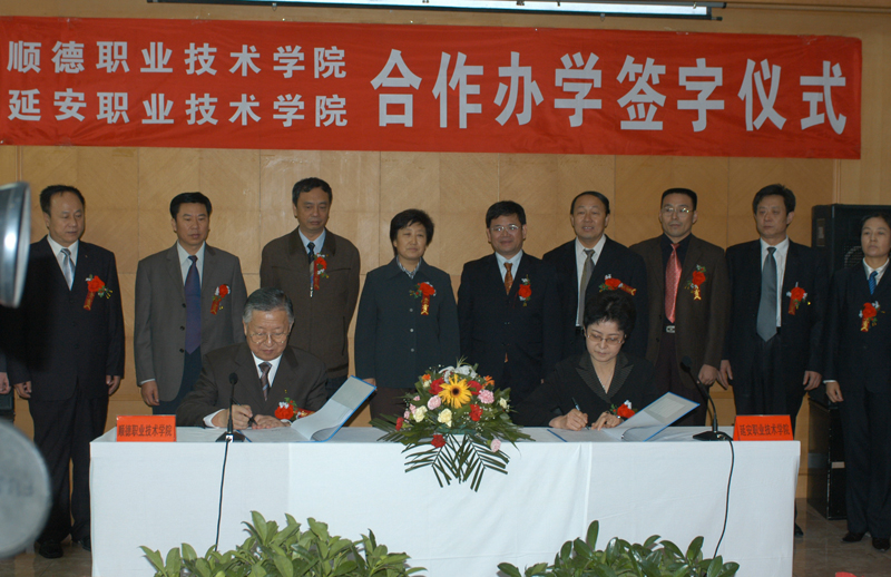 9月23日,教育考察团参加了延安职业技术学院财经信息分院的开学典礼暨军训总结大会。在会上,陈智院长应邀做了精彩发言,陈智院长在发言中提到,虽然顺德职业技术学院与延安职业技术学院天各一方,但共同的目标把两个学校的心连在了一起,他希望两校真诚合作,共同提高,在师资队伍培养、教学科研等方面进行深入合作。随后,两校召开了对口支援合作办学座谈会。在座谈会上,教育考察团观看了延安职业技术学院新校区建设规划专题片,听取了兰培英院长对延安职业技术学院基本发展情况的汇报,陈智院长介绍了我院的基本情况。最后,本着诚信互惠、平等互利的原则,两校领导代表各自单位就院级领导之间定期互访、开展师资交流和培训及进行德育合作等方面签订了合作办学协议。在签字仪式上,延安市副市长冯继红对陈智院长一行表示欢迎,介绍了延安市的经济发展和教育发展情况,并希望学院和延安职业技术学院的合作与交流更广泛、更深入;陈智院长也代表教育考察团对延安职业技术学院的热情接待表示衷心感谢,希望两校充分发挥各自优势,取长补短,共同为高等职业教育的发展做出各自应有的贡献。最后,陈智院长与兰培英院长签订了合作办学协议。