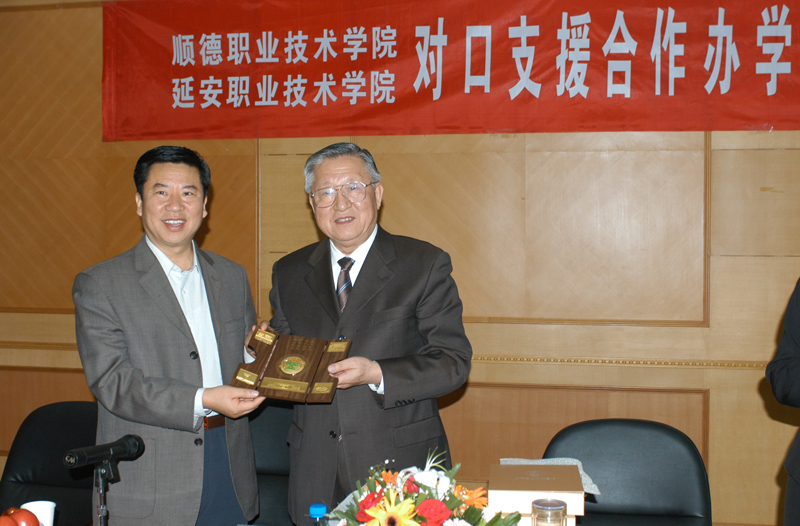 为贯彻落实《国务院关于大力发展职业教育的决定》中“积极开展城市对农村、东部对西部职业教育对口支援工作”的精神,实现东西部职业技术教育资源的共享,更好地推动区域经济社会的发展,9月21日至9月25日,我院院长陈智、副院长罗勇武,华南家电研究院常务副院长、顺德生产力促进中心主任欧阳志强,顺德职业技术学院继续教育部主任、顺德电大副校长齐振彪,招生就业处处长储晓鸣,创业培训学院常务副院长周华,教务处欧阳丽,办公室工作人员蒋琳及广东技术师范学院高教职教研究所所长刘合群教授一行9人组成的教育考察团,到延安职业技术学院进行了为期5天的对口交流。延安市副市长冯继红,延安职业技术学院党委书记杨军宪、院长兰培英、副院长高兆宏、高思龙、高雅琴等领导和师生热情接待了考察团一行。
