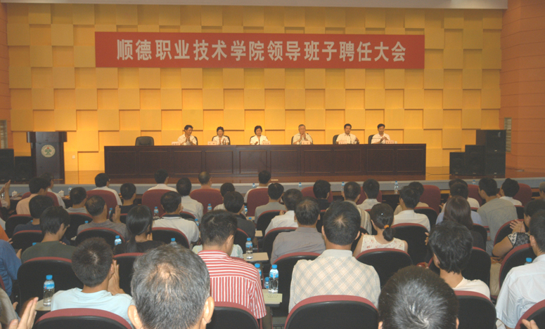 潘志文副区长向全体与会教师通报了学院新一届领导班子聘任的有关情况,顺德区区委常委、组织部长刘珊宣读了顺德区委区政府及区委组织部的有关决定:陈智、何锐连、邹时智任顺德职业技术学院党委委员、副书记;陈智任顺德职业技术学院院长,何锐连、邹时智、罗勇武、陈粟宋任顺德职业技术学院副院长;罗勇武、陈粟宋、谭谦章、刘毓、徐刚任顺德职院技术学院党委委员。