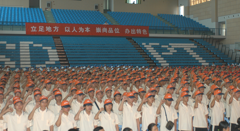 最后,动员大会在1300多名新生“坚持服从大会安排,遵守大会纪律,……为佛山增光添彩”的宣誓中结束。