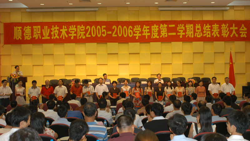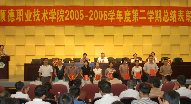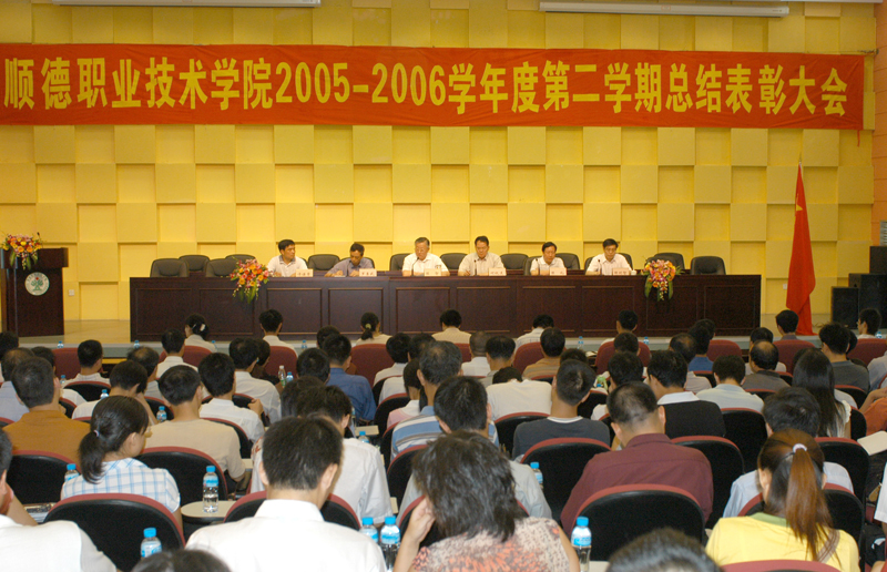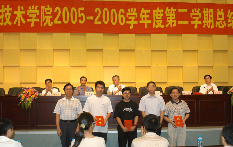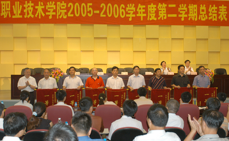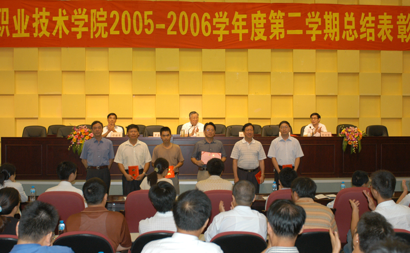 为全面总结本学期学院工作,明确下一阶段工作任务和目标,并对评建、教学、科研和德育工作等方面的先进集体和先进个人进行表彰,学院于7月10日在学术交流中心召开了2005-2006学年度第二学期总结表彰大会,院长陈智,副院长何锐连、罗勇武、邹时智、陈礼,纪委书记谭谦章及全体教职工参加了总结表彰大会。