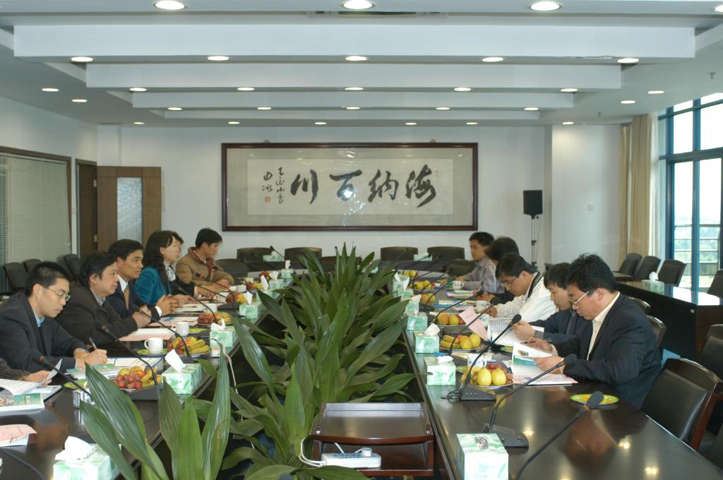 在学院行政楼1508会议室,专家组与学院纪委书记谭谦章,学生处、教务处有关人员进行了座谈,并向校方反馈检查情况,提出改进建议。