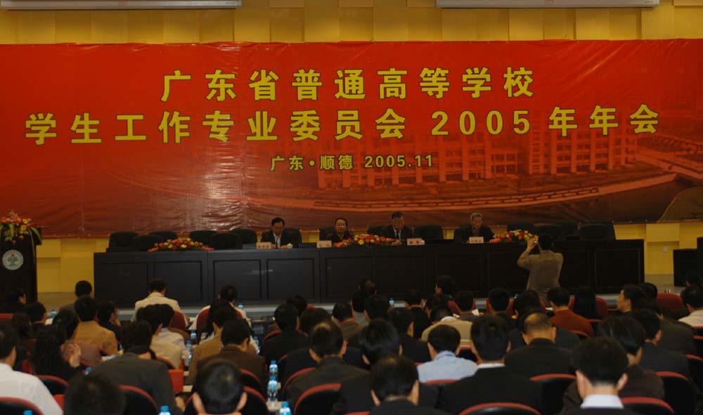 11月25日,广东省普通高校学生工作专业委员会2005年年会开幕式在我院隆重举行。教育部社政司副司长冯刚、省教育厅思想政治处处长叶梓效、中山大学党委副书记陈伟林、我院院长陈智、副院长何锐连、纪委书记谭谦章和来自全省各高校的领导、专家、代表们150余人齐聚我院学术报告厅,开幕式由中山大学党委副书记陈伟林主持。