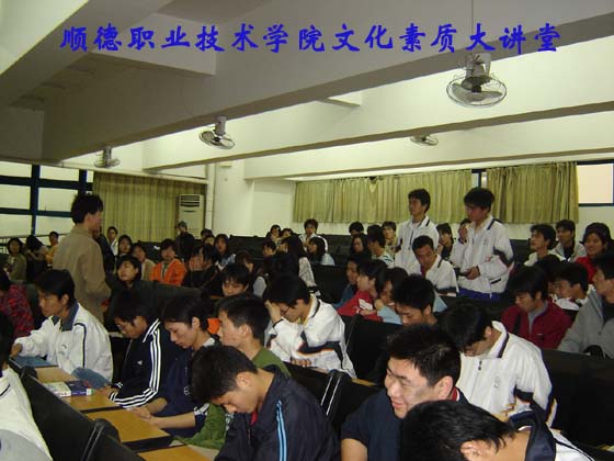 2005年3月12日星期六上午9:00—11:00,在教学楼53300,第二期的文化素质大讲堂由机电工程系承办,为加强学生与企业进行多渠道的沟通,特请来顺德怡辉空调设备有限公司人力资源部袁汉光部长,给我们讲了一堂“态度决定一切——职业道德若干问题”的讲座,受到了同学们的欢迎。