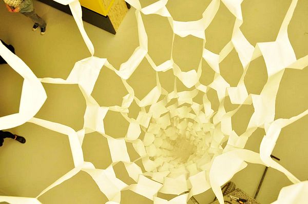 14日,芬兰设计师和工作坊学生共约40人前往广州CAC国际单位当代艺术中心进行展厅的最后布置,并成功地将作品悬挂于芬兰建筑双年展的展厅内。下午3时,工作坊成果展及分享会召开,德赢工作坊学生和芬兰设计师一起总结了此次工作坊的工作经验、成果等,也宣告了本次工作坊的圆满结束。