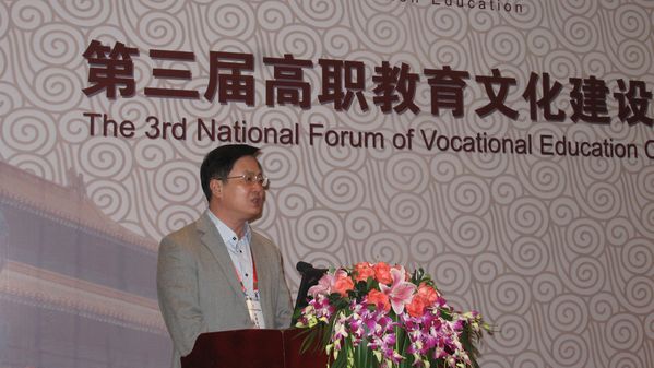 大会上,结合党的十七届六中全会提出的“建设社会主义文化强国”战略目标,夏伟校长提出了“高职教育在建设文化强国中应承担怎样的文化责任?”这一重大课题,从技职领域存在的诸多现象入手,反思高职教育的文化责任,并从高职教育作为并行于普通高等教育的一种“类型”地位入手,深刻指出高职院校树立文化自信与提升文化自觉是彰显高职教育“高等性”的迫切要求,如何将技职领域先进文化提炼、升华、转化为高等教育素材,也正是高职教育“职业性”的根本要求。