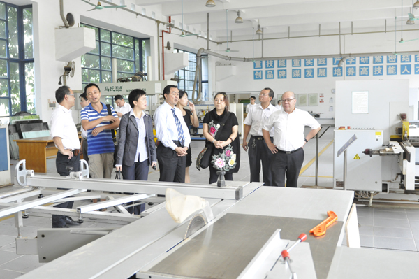 金田豪迈木业机械有限公司董事长关健华先生一行随后参观了设计学院毕业设计作品展和设计学院实训室。