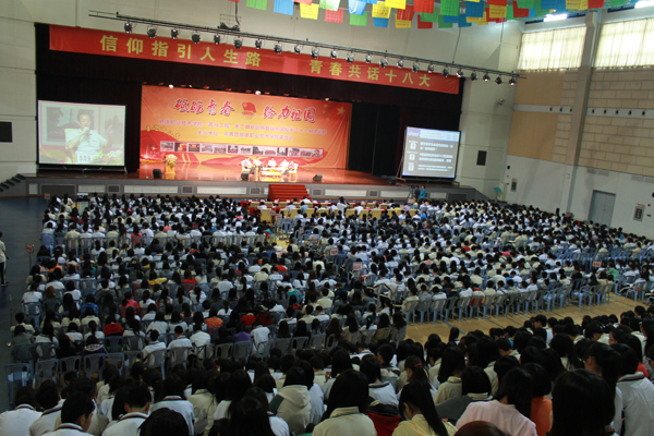 11月3日上午,德赢学生处、团委以“信仰指引人生路青春共话十八大”为主题的“青马工程”第二期培训班开班对话活动在梁銶琚堂举行。共青团广东省委常委、学校部部长冯永忠,德赢刘毓副校长,省学联、南方医科大学、广东工业大学、五邑大学、中山职业技术学院、江门职业技术学院、广东交通职业技术学院、南海东软信息职业技术学院等院校的青年骨干2000多人共同参与对话活动。