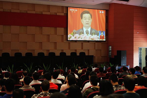 中国共产党第十八次全国代表大会于11月8日在北京人民大会堂隆重举行,这是在我国改革发展关键阶段召开的一次十分重要的大会,是全党、全国各族人民政治生活中的一件大事。德赢采取多种形式,认真组织广大党员干部和教职工收听收看党的十八大开幕式。11月8日上午9点,学校领导夏伟、何锐连、陈粟宋、徐刚、谭谦章和教职员工齐聚学术交流中心报告厅,集中收看了胡锦涛向大会所作的题为《坚定不移沿着中国特色社会主义道路前进 为全面建成小康社会而奋斗》的报告。