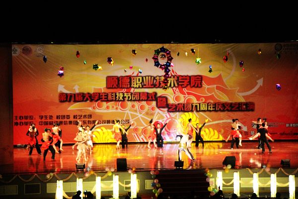 在艺术团九周年庆文艺汇演的环节中,校艺术团为现场观众呈现了一场内容丰富的视听盛宴。校艺术团流行乐队、街舞队、拉丁舞队、小组唱队用他们激情四射的表演展现了德赢学子的青春活力,现场欢呼声、尖叫声不断。民乐团演奏的一曲《女儿情》重现了西游记里的经典一幕,健美操队的舞蹈《奔腾的中国》体现了中国的大国气势。舞蹈团则把他们在第七届广东大学生舞蹈大赛第五赛区的比赛中荣获二等奖的作品《甜蜜蜜》带到了现场,把活动气氛推向高潮。最后,晚会在俊男靓女的模特走秀中落下了帷幕。本次晚会彰显了校艺术团在丰富校园文化、为学校培养艺术人才方面所取得的不俗成绩。活动还开启了以#顺职艺术团九周年庆#为话题的微博墙,引来校内外20000多人次的热议,登上了新浪微博热门话题榜的第四名。