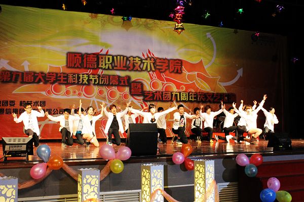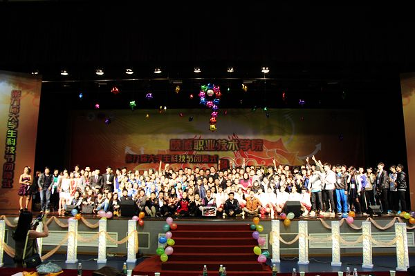 活动在精彩的醒狮表演中拉开帷幕,最后两头狮子合力将写着本次科技节主题的横幅展现在观众面前,引得满堂喝彩,紧接着播放了本届科技节的精彩视频回顾。晚会还对上一学年校艺术团工作中表现突出的个人和队伍,以及本届科技节中表现优异的先进个人和集体进行了表彰。酒店及旅游管理系、机电工程系、电子与信息工程系、设计学院和应用化工技术系获得了本届科技节优秀组织奖。