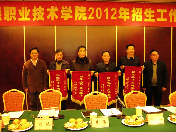 何钊胜副局长、夏伟校长对“2012年招生工作先进集体”经济管理学院、机电工程系、酒店及旅游管理系、信息管理中心进行了表彰及颁奖。