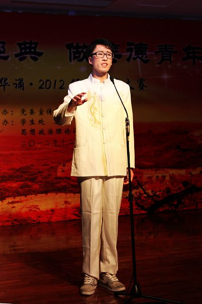 诵读大赛由党委宣传部主办,学生处、校团委、工会、人文教育系、思政课部协办,各院(系)积极组织师生参与,经过初赛、复赛,经典诵读总决赛共有8个院(系)的13支师生队伍参赛。朗诵作品包括《将进酒》、《琵琶行》、《乡愁》、《颂歌献给党》等。经过专业评审,共评出一等奖1个,二等奖2个,三等奖4个,优秀奖6个。其中,酒管系学生陈正舵深情演绎的《望大陆》荣获本次大赛一等奖。