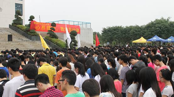 在开幕式开始之前,到场师生一起为“4.20”雅安地震死难者默哀,哀思逝者,为灾区祈福,愿生者坚强!