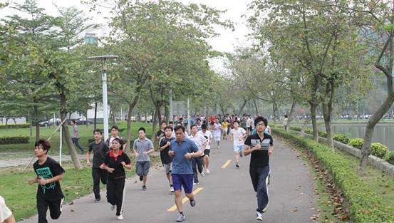 学校党委何锐连副书记鸣枪一响,长跑活动拉开帷幕,师生们热情高涨,伴着轻快的歌曲一路向前奔跑。长跑活动由梁銶锯礼堂前开始,环湖经过智慧门到图书馆,最后冲刺回到礼堂。