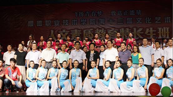 学校领导十分重视校园文化建设。夏伟校长在听取人文素质教育特长生班近期工作汇报后,指示要认真办好特长生班的教育,使之成为一支为推动校园文化建设的主力军,并预祝晚会取得圆满成功。学校党委何锐连副书记、刘毓副校长亲临现场观看晚会。顺德老年大学佘炜校长,学校党委宣传部、学生处、督导室及人文教育系相关负责人出席了晚会。